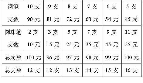 100元去买奖品,一支钢笔9元,一支圆珠笔5元,两种笔都要买,钱全部用完,最多买( )支钢笔,( )支圆珠笔.