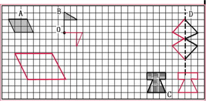 (4)解答:根据轴对称图形的定义,画出图形D的另一半图形,使它成为一个轴对称图形.