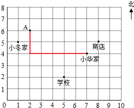 小华从家向西走5格,再向北走2格,这时小华在A点;