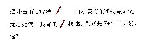 ,小英有4枝,她俩一共有________枝.