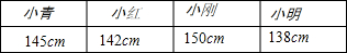 分析:由题意可知,小青比小明高,比小刚矮,即小刚>小青>小明;小红比小青矮,比小明高,即小青>小红>小明.综上可知,小刚>小青>小红>小明.由此即知他们的身高各是多少cm.所以小刚的身高是150cm,小青的身高是145cm,小红的
