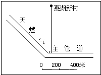 惠湖新村要排一条管道与天然气主管道连接.要使管道最短,请在如图画出所排管道及连接点的位置.再请你求出所排管道的实际长度(计算时图上距离用“四舍五入”法取整厘米数.