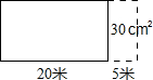 一个长方形花圃的长是20米.如果长增加5米,宽不变,花圃的面积增加30平方米.长增加后花圃的面积是多少平方米?(先画图整理,再解答)