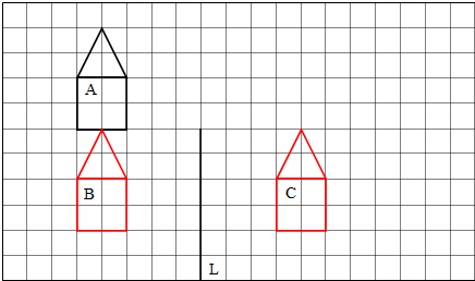 (2)然后根据轴对称图形的特征,对称点到对称轴的距离相等,对称点的连线垂直于对称轴,在对称轴L的右边画出左图的五个对称点,再首尾连结各点即可得到B的对称图形C.
