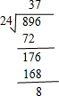896÷24=37…8