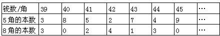 解答:通过上图看出,所买8角一本的本数随钱数增加呈周期规律,一个周期内有五个数:3,0,2,4,1(本);