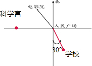 科学宫在人民广场的方向是南偏东30°.