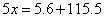 x的5倍减去16.5与7的乘积,差是5.6,求x。