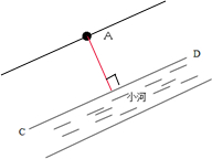 (2)过A点的黑色直线即是所求的过A点画出的小河CD边的平行线.