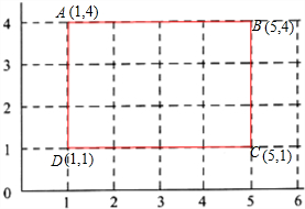 长方形四个顶点的位置分别是A(1,4),B(5,4),C(5,1),D(1,1).