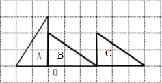 将b角形A绕点O顺时针旋转91°得到图形B.将图形B向右平移3格,得到图形C.