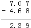 7.07-4.68=2.39