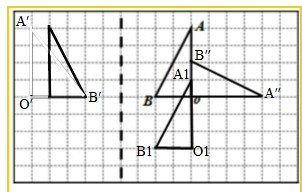 (1)、根据给定的对称轴,画出三角形AOB的对称图形.