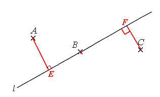 点B在已知直线上,它到直线的距离为0; 点A、点C 到已知直线的垂线段AE、CF的长度,就是点A、点C 到已知直线的距离.