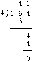 124÷4=41