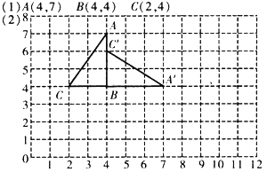 (1)用数对表示三角形的顶点A、B、C的位置。