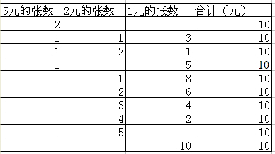 从2张5元人民币、5张2元人民币、lO张1元人民币中取10元钱,共多少种不同的取法?