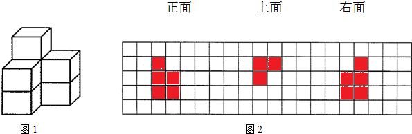 (3)在图2的方格图中,画出图1图形从正面、上面、右面看到的形状如下: