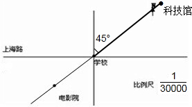 (2)科技馆在学校北偏东45度方向1000米处.请在图中标出科技馆的位置,并标出数据.