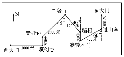 星期天,乐乐到游乐场去游玩.下面是他一天的游玩路线图.请根据路线图填空.