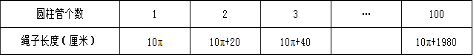 点评:解决本题的关键是观察分析得到每类圆柱管的放置规律,以及圆周长的计算方法,一个圆柱体是绳子的长度就是圆的周长,以后每增加一个圆柱体,绳子的长度就会增加2个圆的直径.