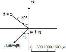 (2)儿童乐园在体育馆南偏西45°方向1250处,在图中表示出儿童乐园的位置.