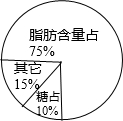 分析:根据题意可知:把奶粉的重量看作单位“1”,糖和其它物种的含量占(1-75%),根据已知一个数的几分之几是多少,求这个数,用除法求出奶粉的重量,进而根据求一个数是另一个的几分之几,分别求出糖的含量和其它物质的含量各占百分之几,然后画出扇形统计图即可.