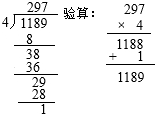 (2)1189÷4=297…1;