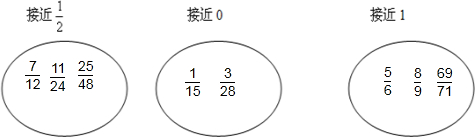 根据各个分数中分子与分母的大小,可将