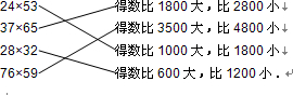 (4)76×59当把76看作70、59看作50时,结果是3500,当把76看作80、59看作60时,结果是4800,据此可连线.