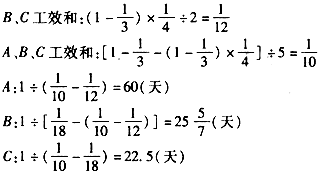 ,剩下的由A,B、C三辆车一起合运5天全部完成。问A、B、C单独运送这批货物各需要几天?