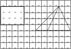 在下面方格纸中,画一个与图中长方形面积相等的三角形,再把所画的三角形按1:2分成两个三角形.