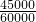 粮食加工厂用60000千克的稻谷加工成45000千克大米,稻谷的出米率是多少?