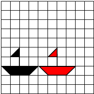 分析:根据平移的特征,把小船的各顶点分别向右平移4格,再依次连结并涂色即可画出小船向右平移4个格后得到的图形.