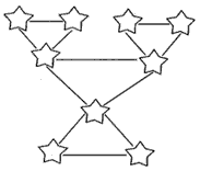 把1~9这9个数填到星星里,使每个三角形上的三个数之和都等于15。