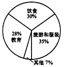 (2)去年小明家教育支出约是4200元,请计算填空。去年旅游和服装支出( )元,饮食支出( )元。