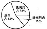 鸡蛋中各部分质量统计图如下图所示。妈妈买来100个鸡蛋,质量恰好是6千克,每天早晨丽丽都吃一个鸡蛋,丽丽每天摄入的蛋白约有( )克,蛋黄约有( )克。