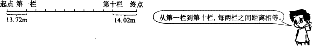 中国选手刘翔在男子110米栏的比赛中获得了冠军,并打破了该项目的奥运会纪录。下面是男子110米栏赛道的示意图。