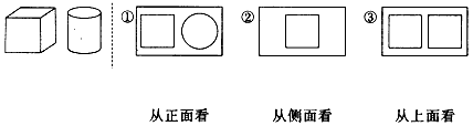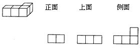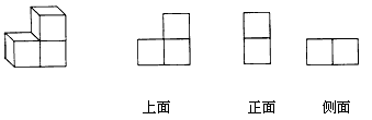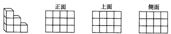 在下面的方格里画出从正面、上面和侧面看到的左边物体的形状。
