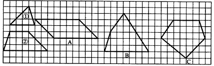 有两个图形①和②,它们能拼成下面的图形( )。