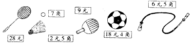 (4)妈妈给我4元钱,我打算买那些物品?在上图中圈一圈。算一 算共付( )钱。