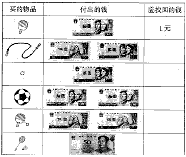 购物时,如果需要找补,怎样付钱合适些?应找回多少钱?照样子填空。