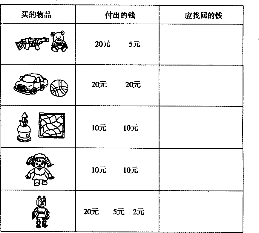 50元钱买两样东西。可以买( )和( );也可以买( )和( )。