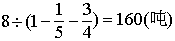 一堆货物8吨,第一次运走,第二次运走吨,还剩下多少吨?正确的列式计算是