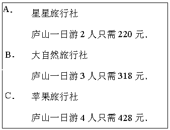 为了吸引更多的旅游者游览美丽的庐山,各旅行社都亮出了自己的“打折牌”.