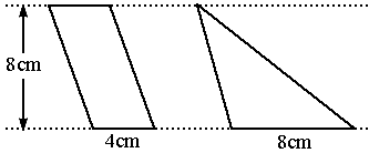 3分米、下底8分米、高4分米的纸片上剪下一个三角形,三角形的面积最大是[