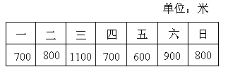 小华一星期跑________米,平均每天跑________米,星期日比星期一多跑________米.