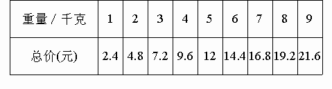 妈妈是粮店的售货员,为了很快的计算出所售面粉的钱数,妈妈在柜台上贴了这样一个售价表
