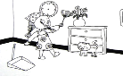 It is sunny and hot. A bird is thirsty. He wants to have some water. Then he can see a bottle. But the bottle is tall and thin. He can't drink the water. He's sad. He can see some little stones. And he has a good idea. He puts(~k) some little stones in the bottle. Look! He can drink the water now. He is not thirsty. He is happy.