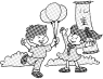 【题目】下图是周日在公园的活动。请按图示内容完成短文。
